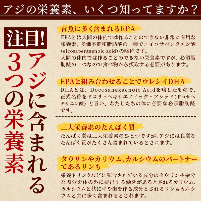 | 原材料名 | あじ(タイ産)、砂糖、食塩/ソルビット、調味料(アミノ酸) |