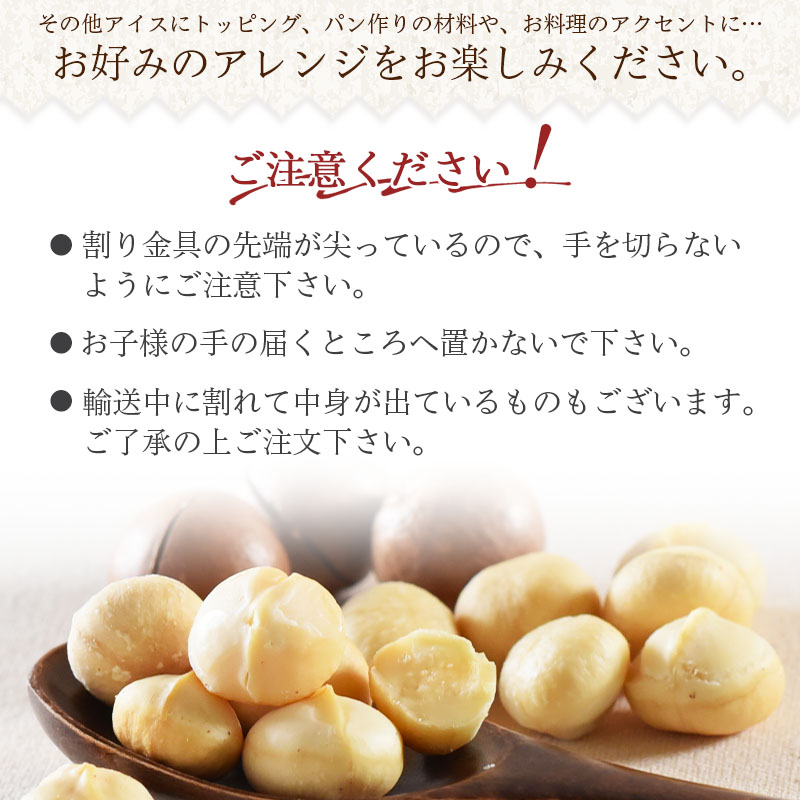 | 商品名 | <殻付きマカダミアナッツ270g+割り金具付> |